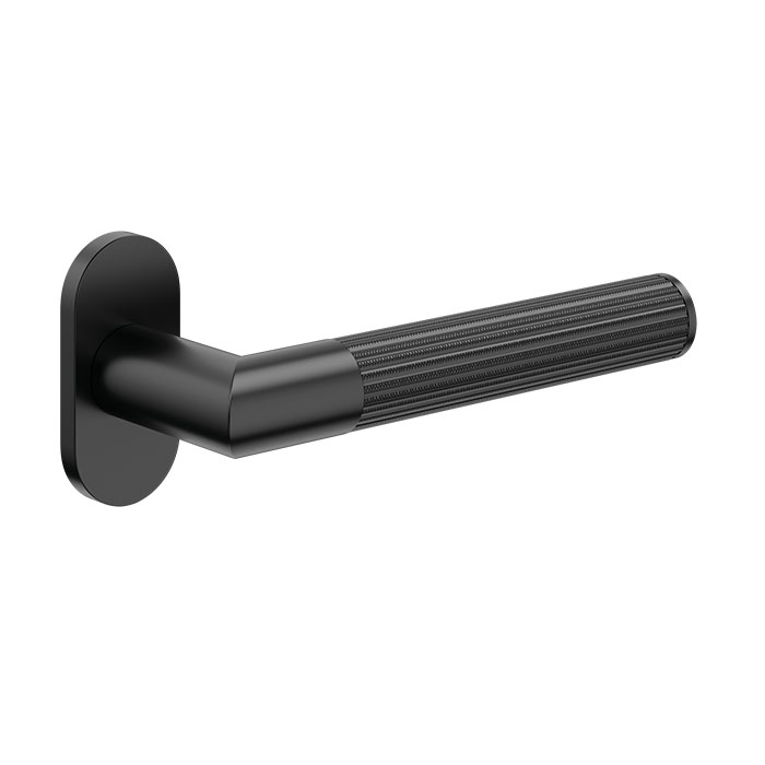 Protagonista del progetto, la maniglia Mayfair nella sua versione nero opaco (NO) esprime un equilibrio perfetto tra funzionalità e stile.